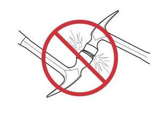Les outils Estwing ne sont pas des jouets. Les outils Estwing sont fait avec des aciers de haute qualité mais si vous taper un outil contre un autre (même dureté) des éclats métalliques peuvent se détacher d'un des outils. L'outil peut être endommager et les éclats peuvent se planter dans les yeux du manipulateur !!! Donc ne pas taper un outil contre un autre outil. Porter des lunettes de protection voir page Se protéger les mains... elles sont proche des outils et peuvent recevoir des éclats. (des gants même assez fin seront une protection)